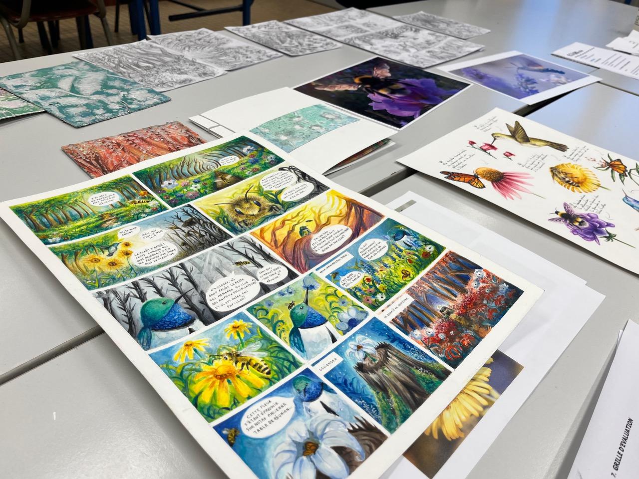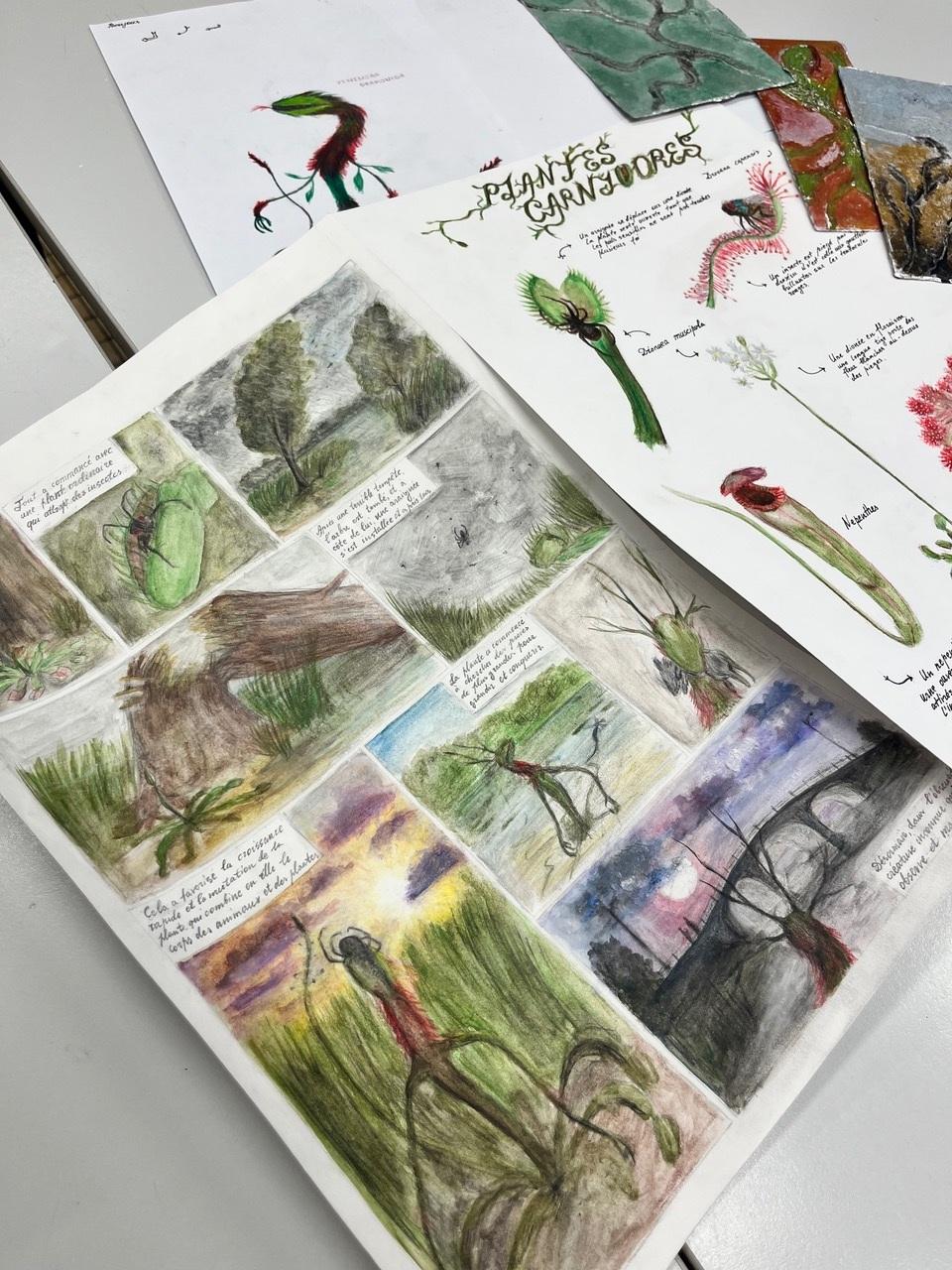 Les élèves de 6e TQ Arts Appliqués ont réussi leur épreuve de janvier avec brio et talent, stimulés par une équipe soudée et coopératrice de professeurs. Cela a permis aux élèves de fournir le meilleur d’eux-mêmes. Félicitations à tous les étudiants pour leurs efforts qui ont donné naissance à de magnifiques planches documentaires illustrées, à des planches de BD, à des carnets reliés et collagraphies.
