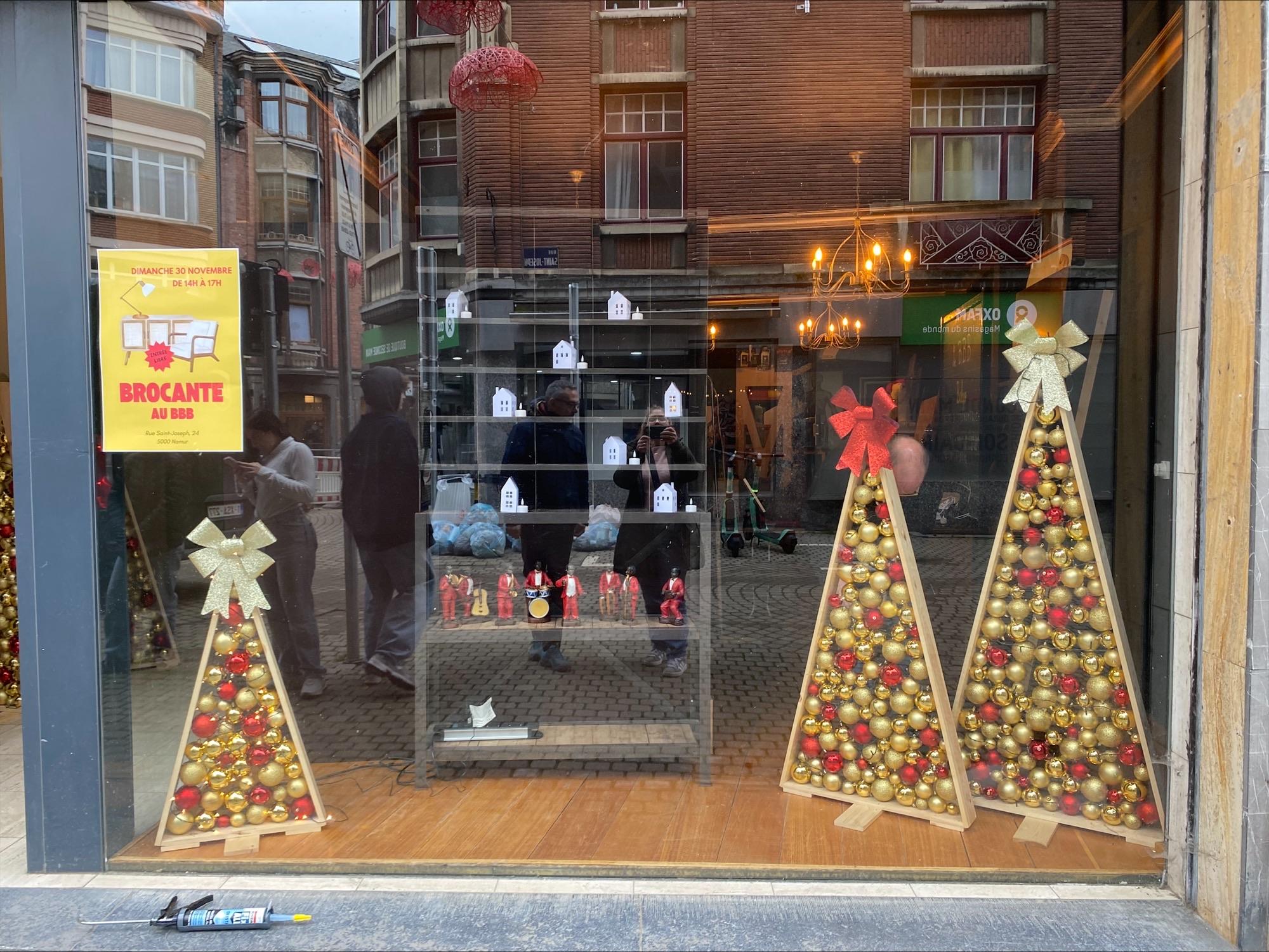 Dans le cadre du projet Noel en chantier organisé par l’asbl « Namur centre ville », notre école a répondu présent en proposant de multiples créations réalisées par les élèves de différentes sections. :