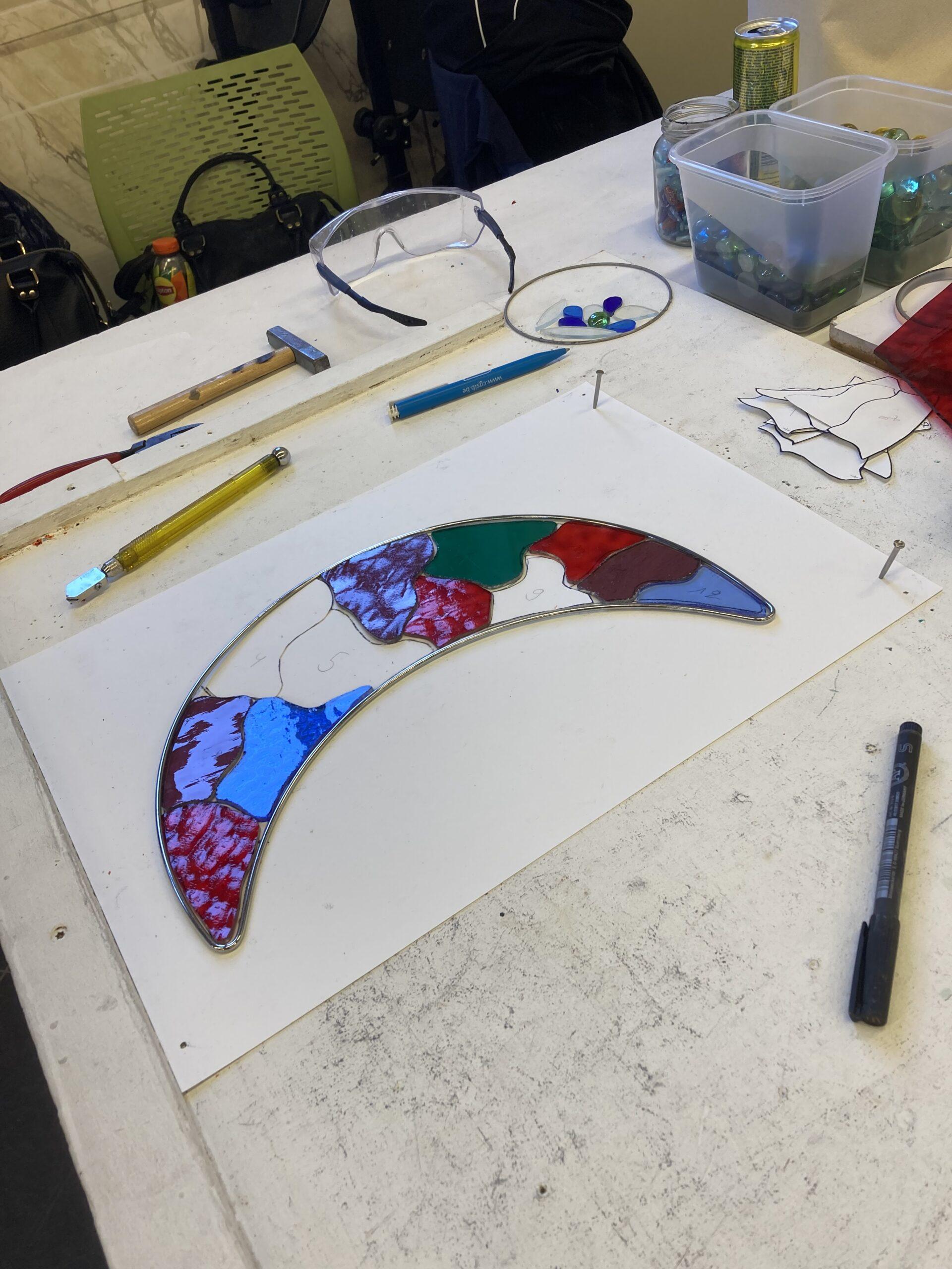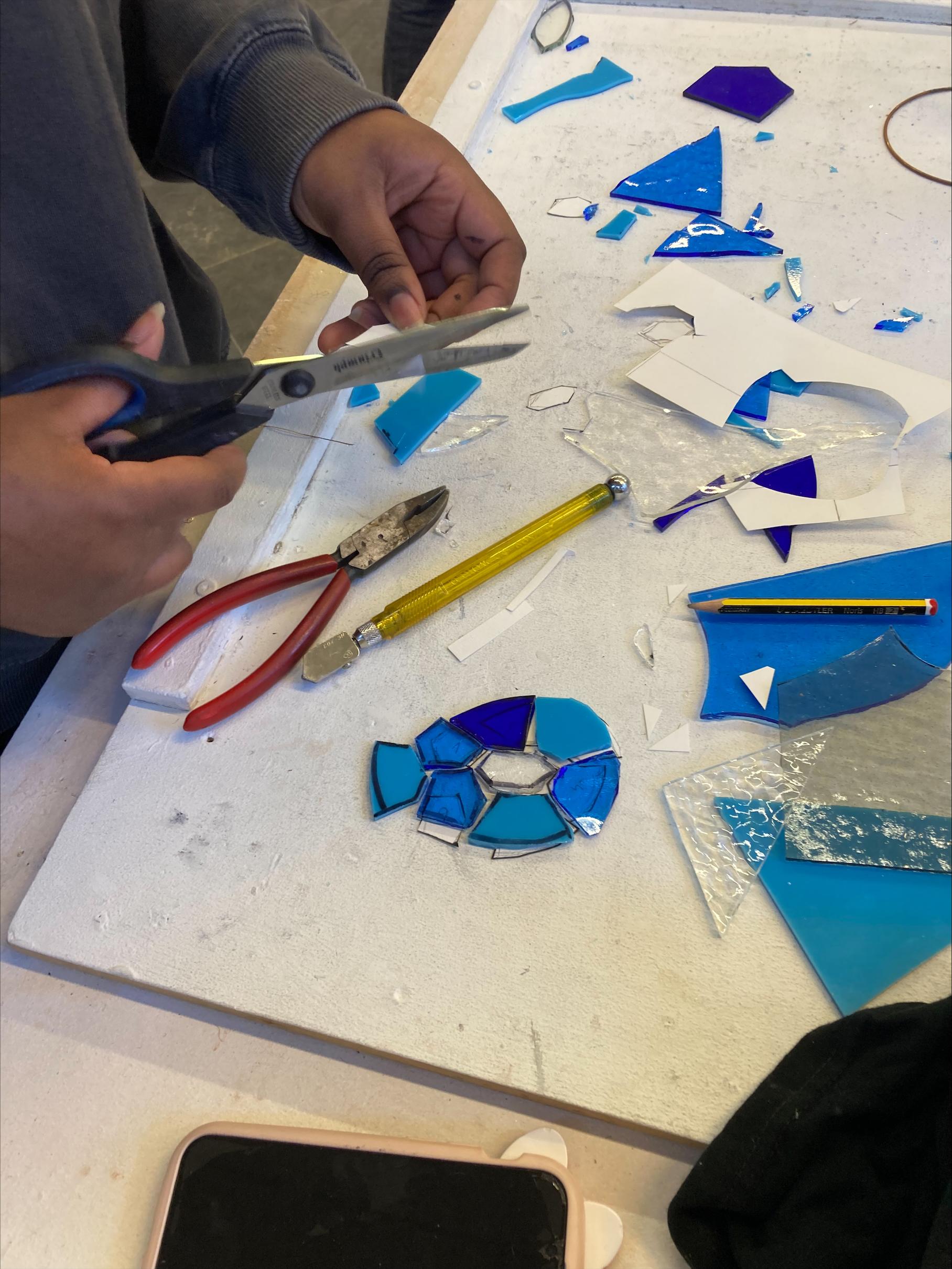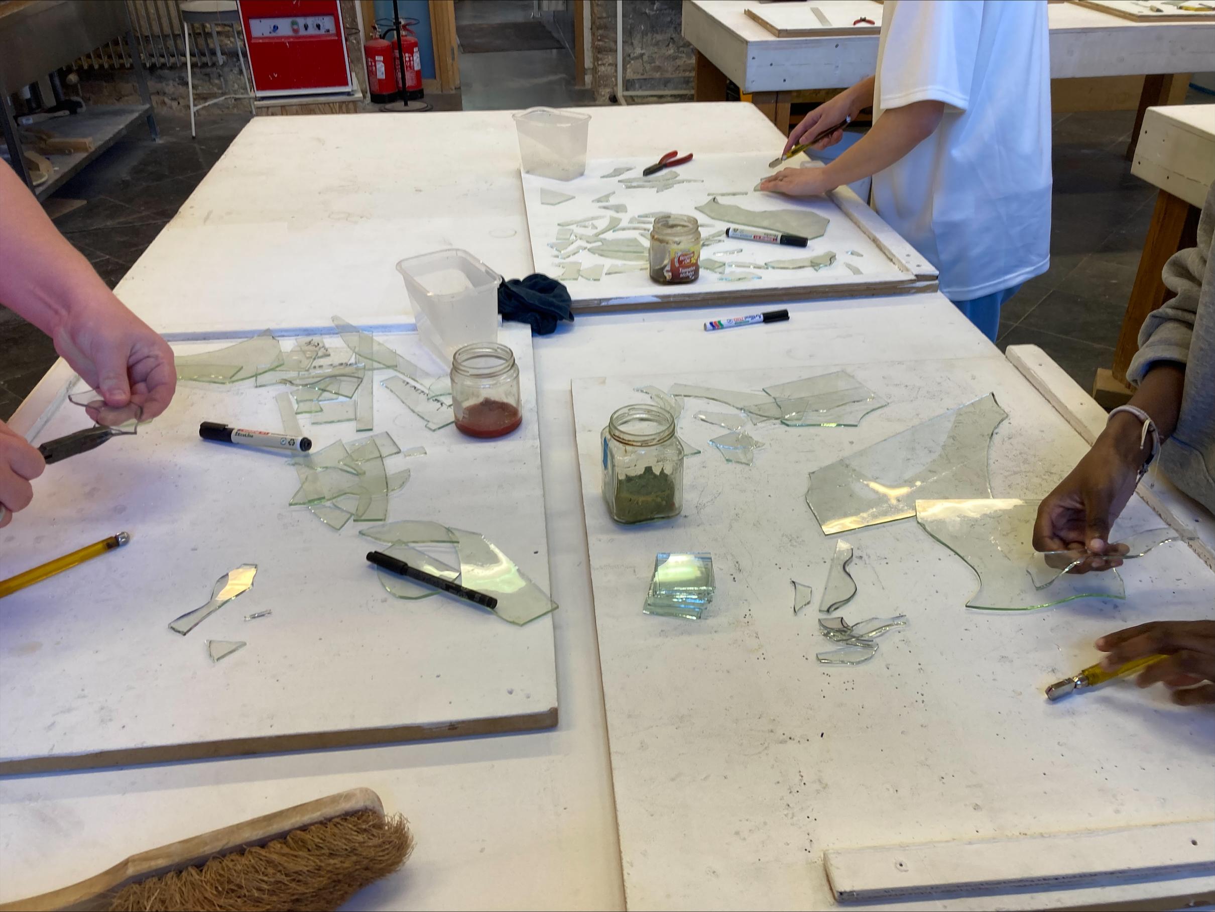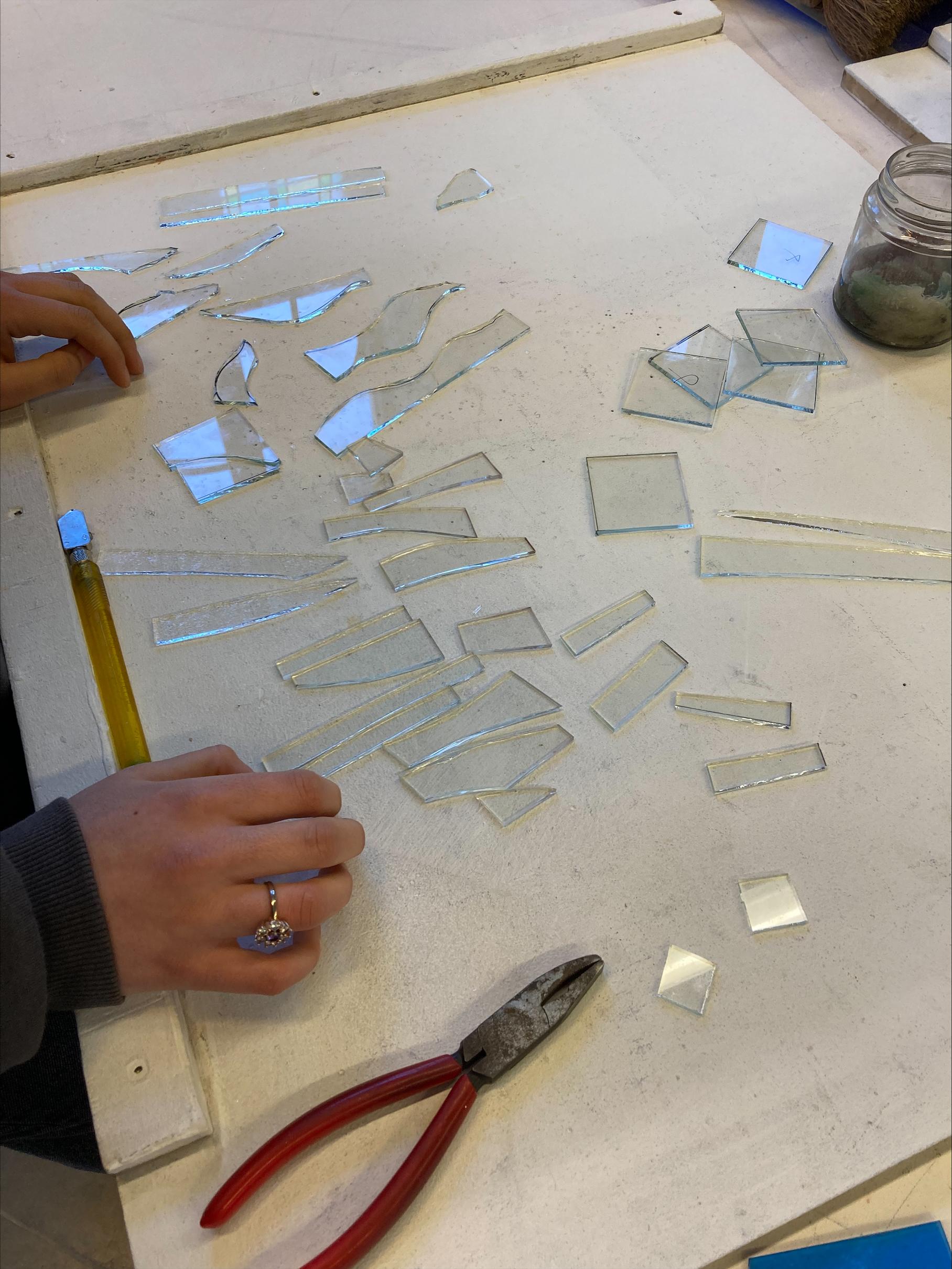 Après les présentations personnelles et matérielles, nos élèves se sont familiarisés avec la découpe du verre et les outils afférents.
