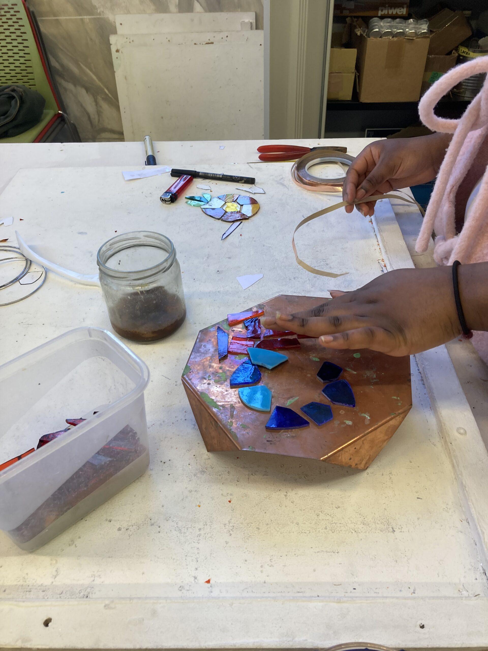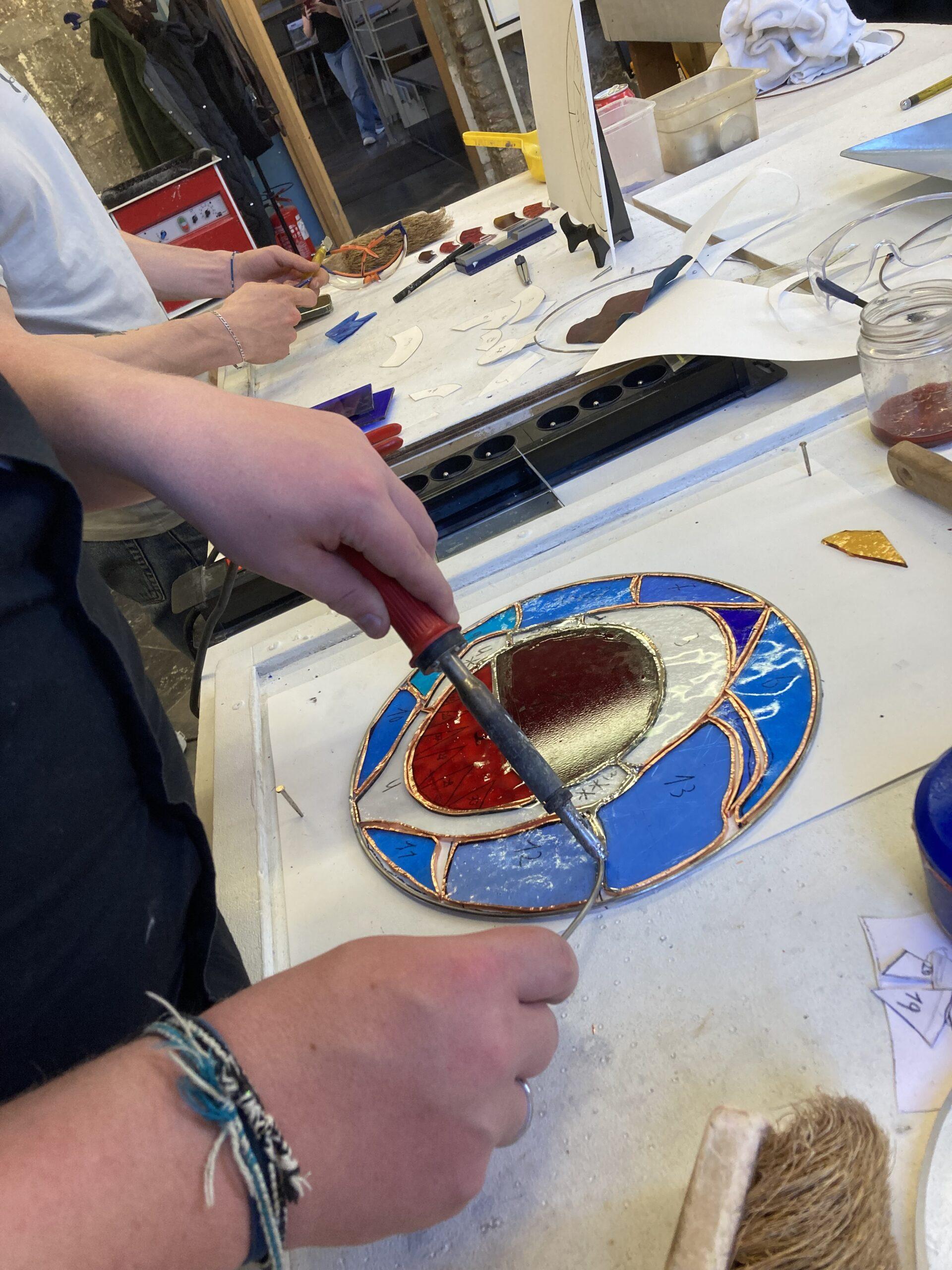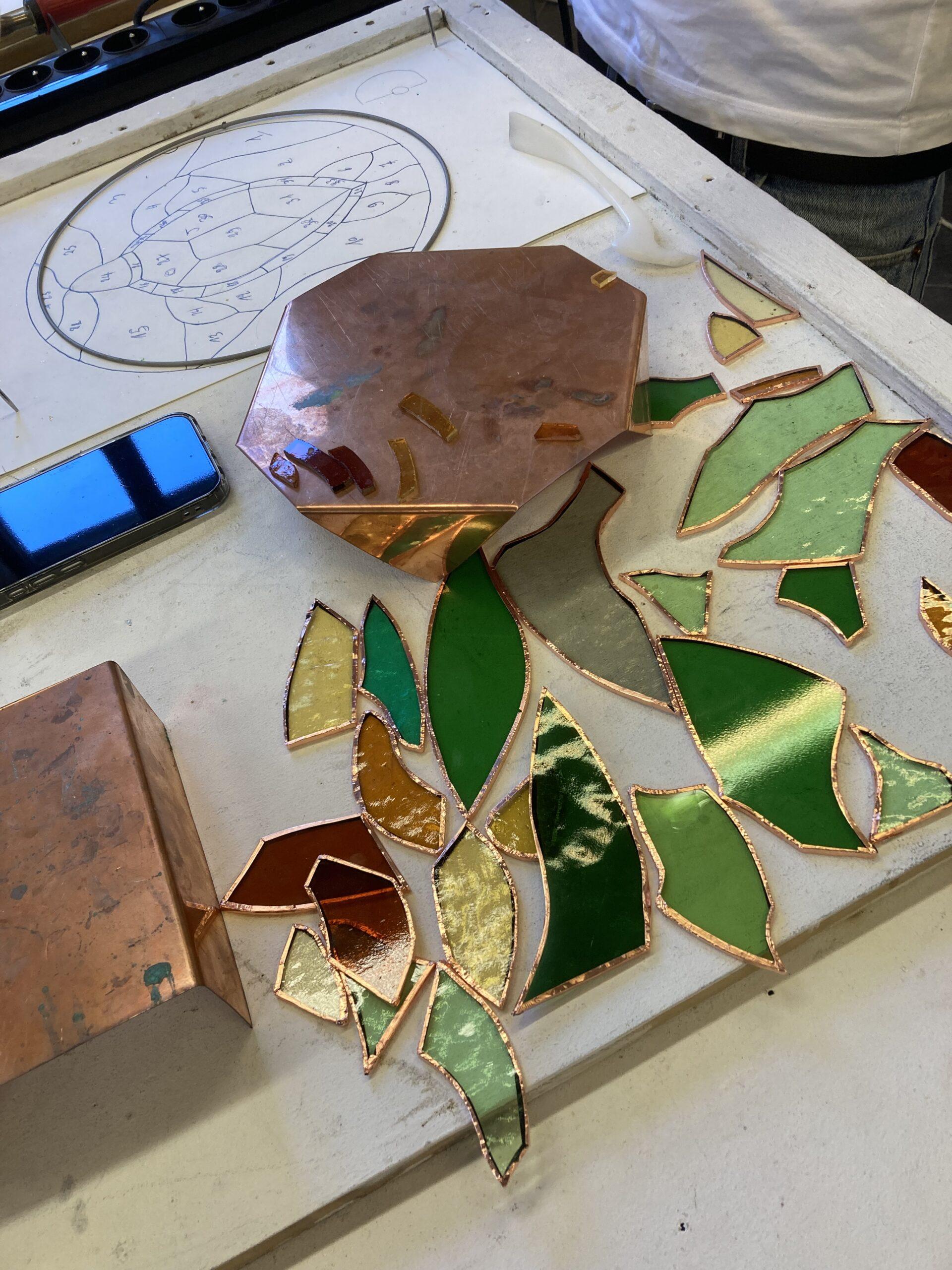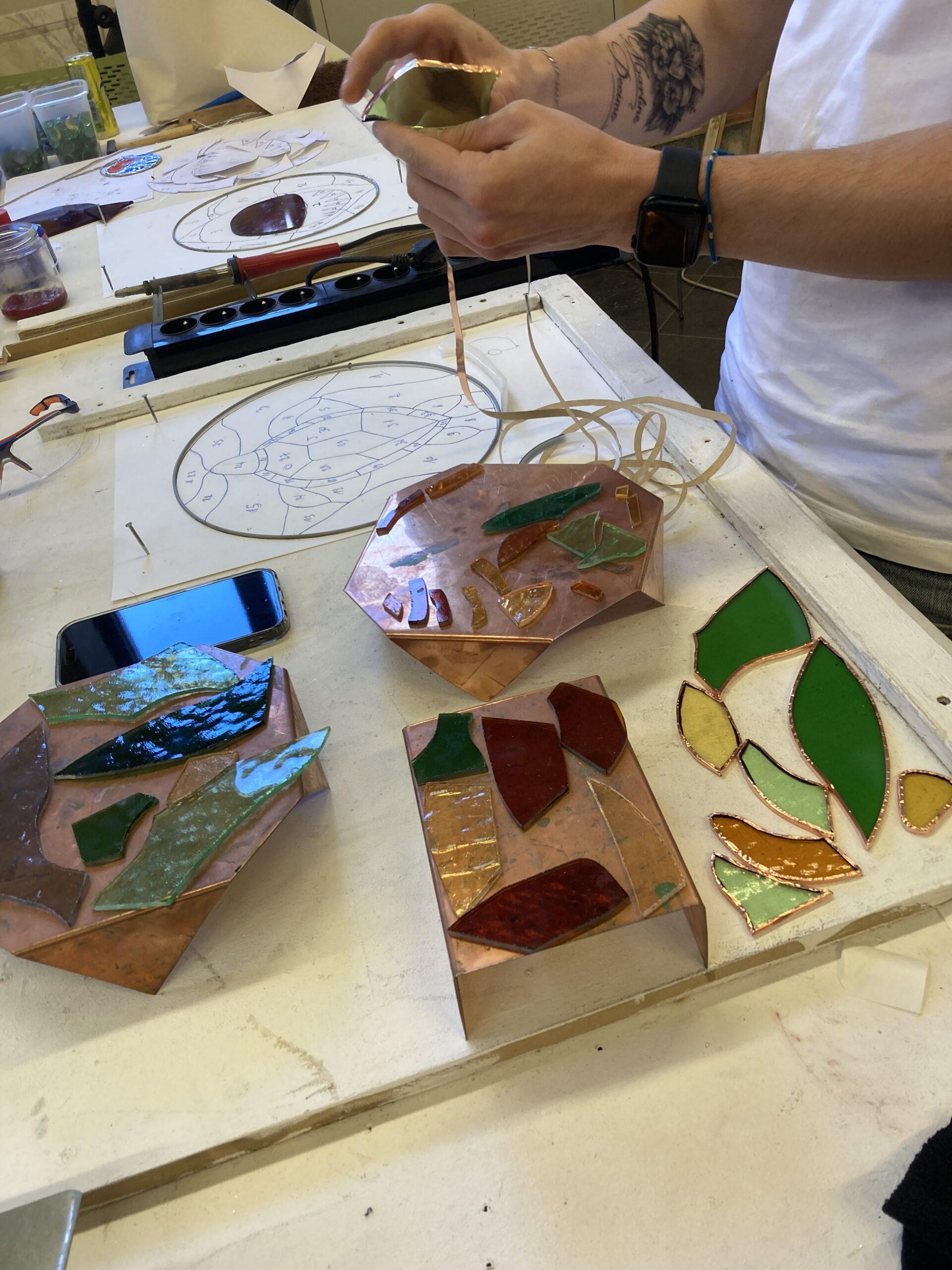 Après les présentations personnelles et matérielles, nos élèves se sont familiarisés avec la découpe du verre et les outils afférents.