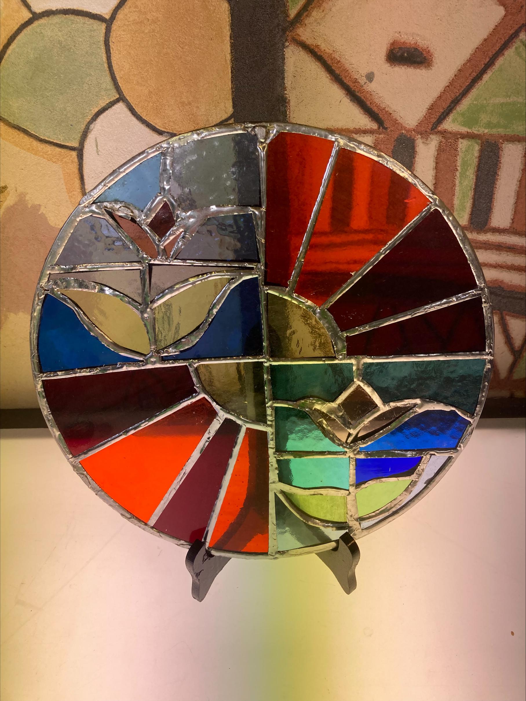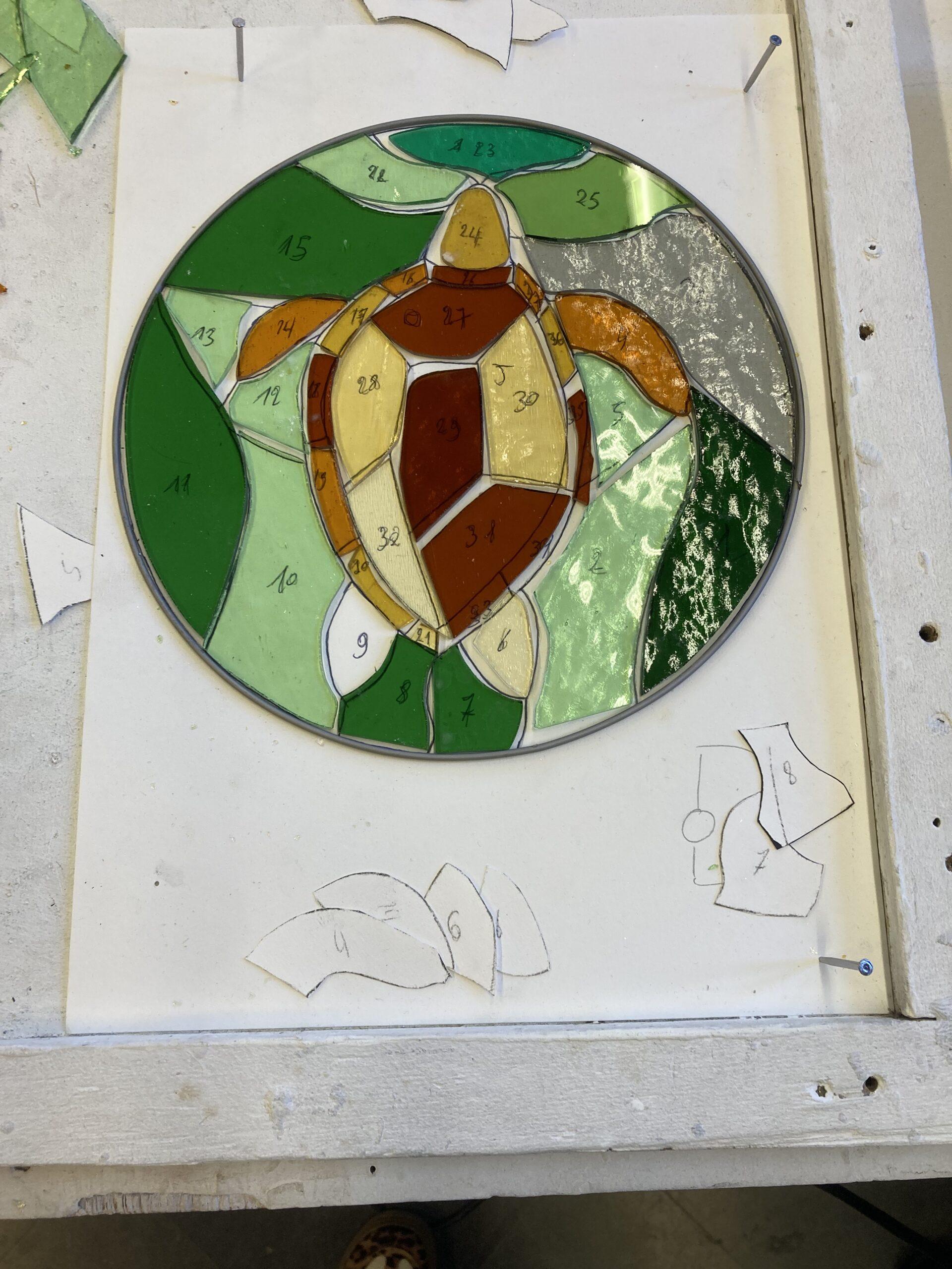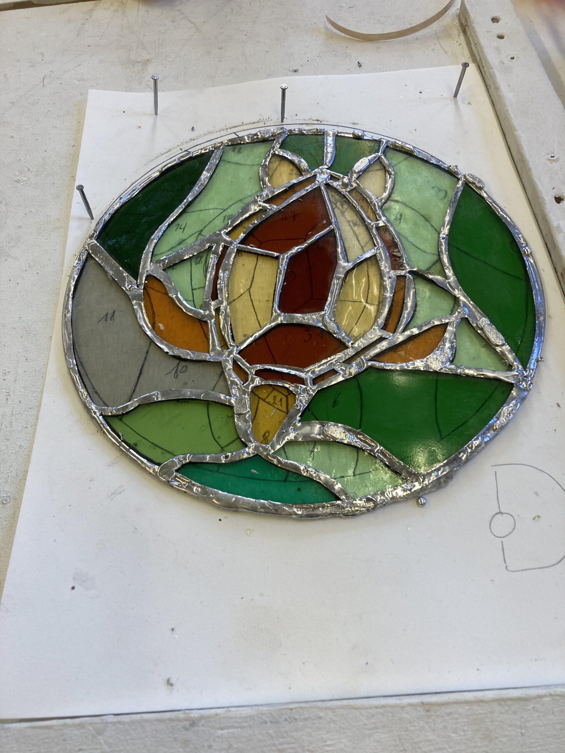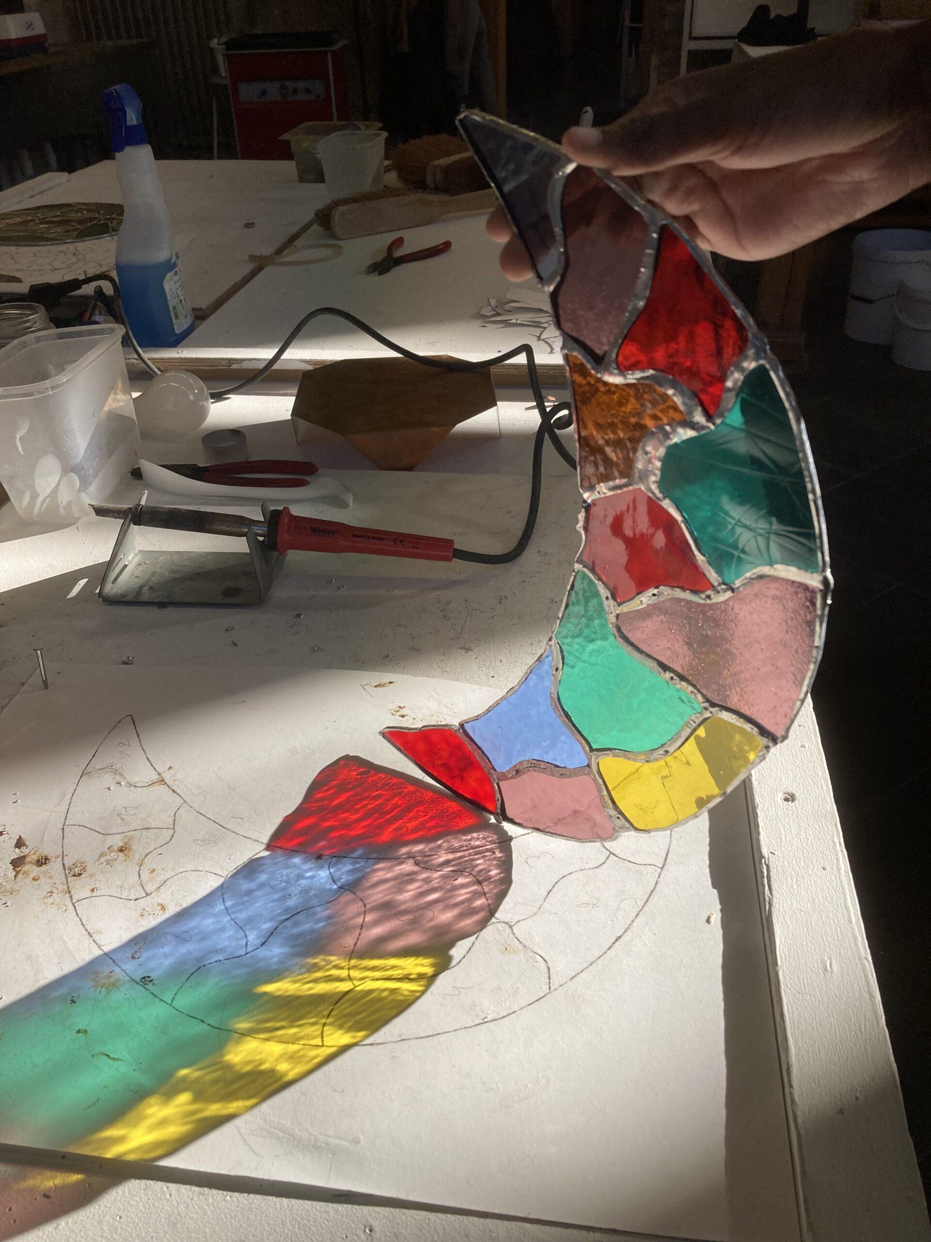 On patine même le plomb ce qui donne une autre dimension au vitrail.