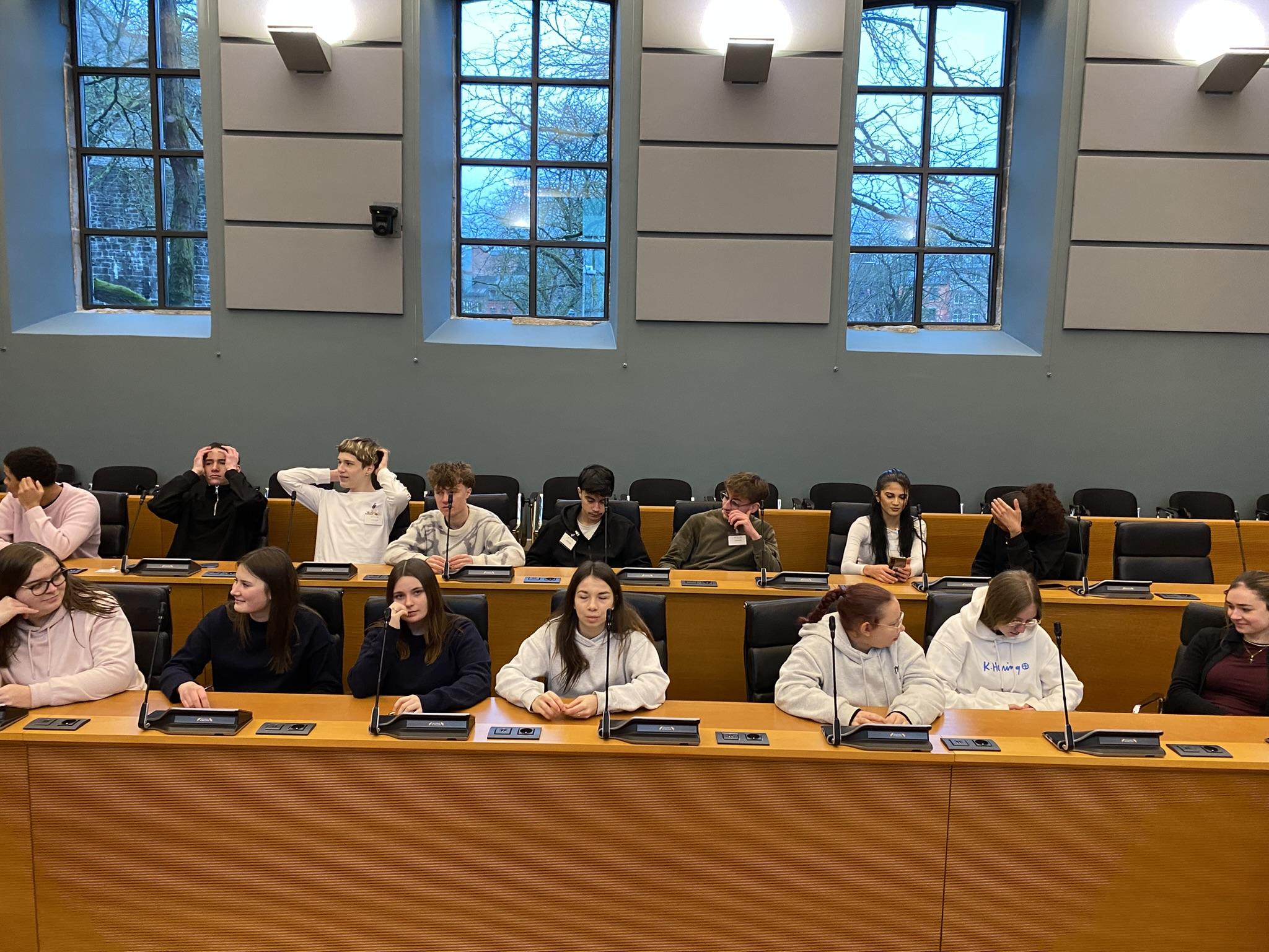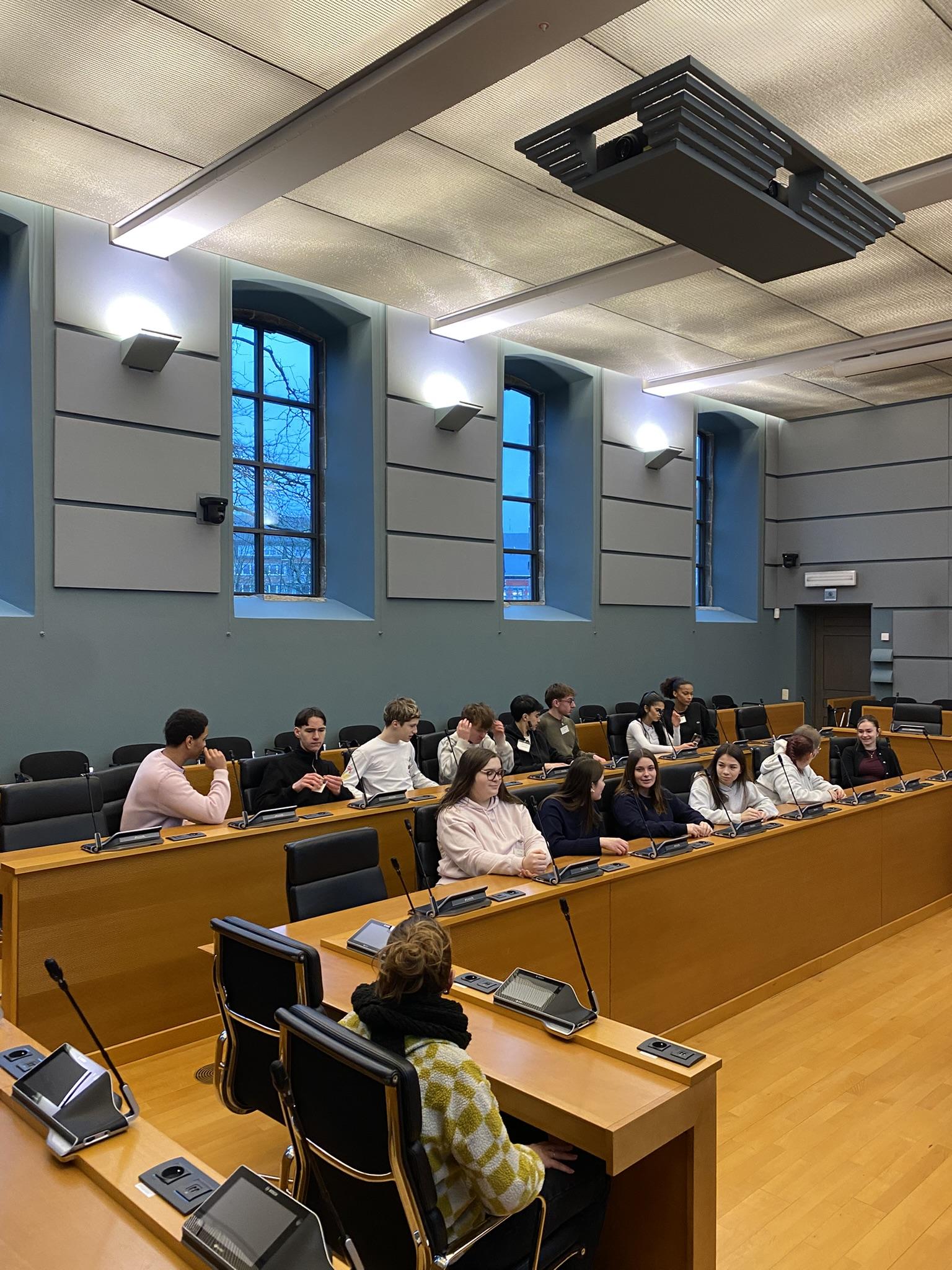 Nous avons également découvert l’histoire du bâtiment, son architecture ainsi que le déroulement d’une séance parlementaire. Les élèves ont pu poser des questions et mieux comprendre le rôle des élus et l’importance de la démocratie.